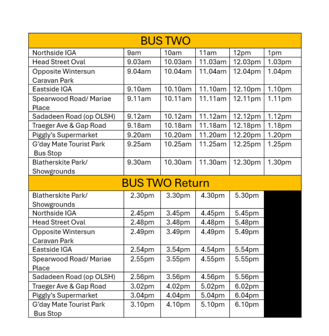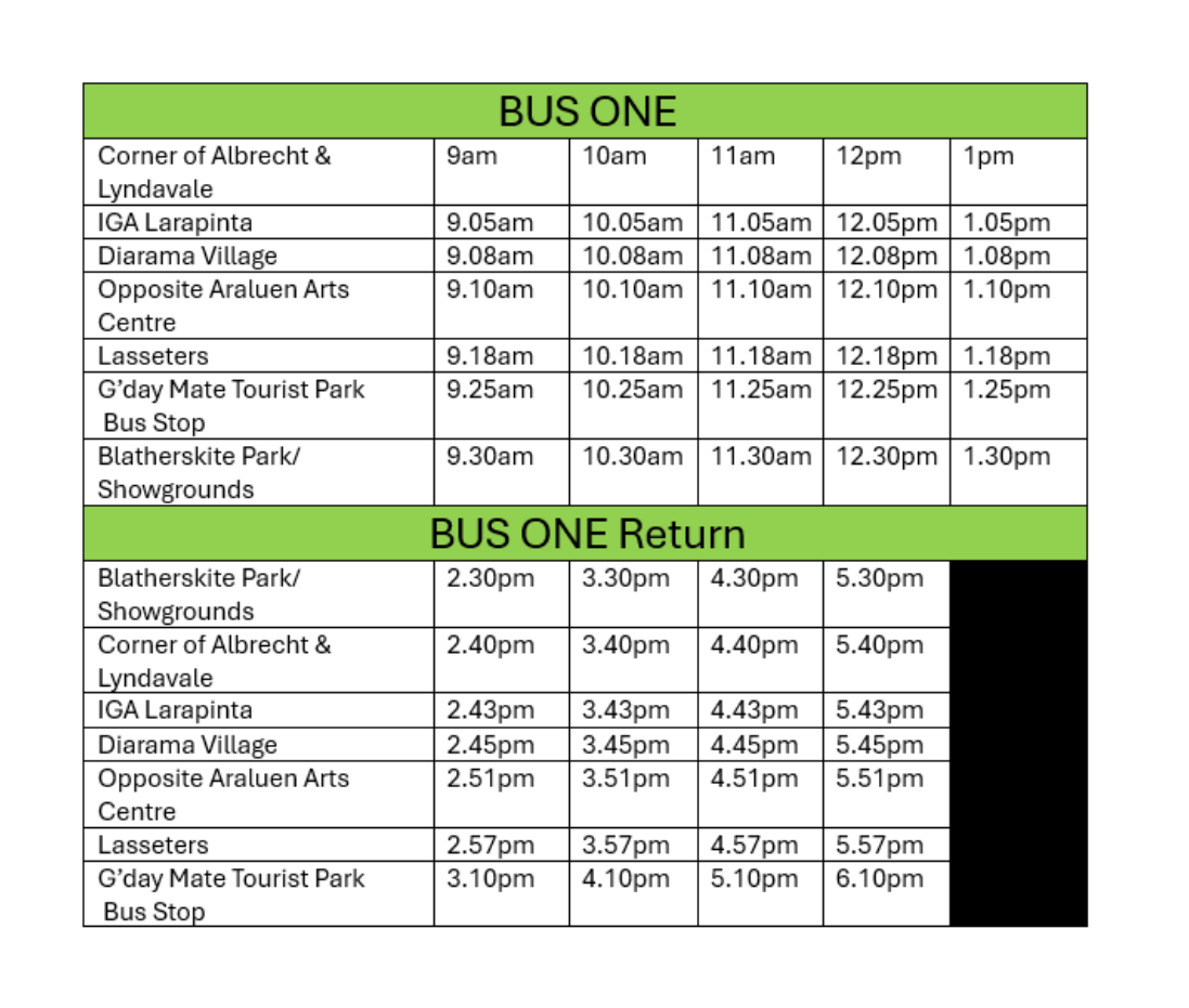 Passengers may hop on/ off at any of the below times/ stops on Friday 4th & Saturday 5th July!